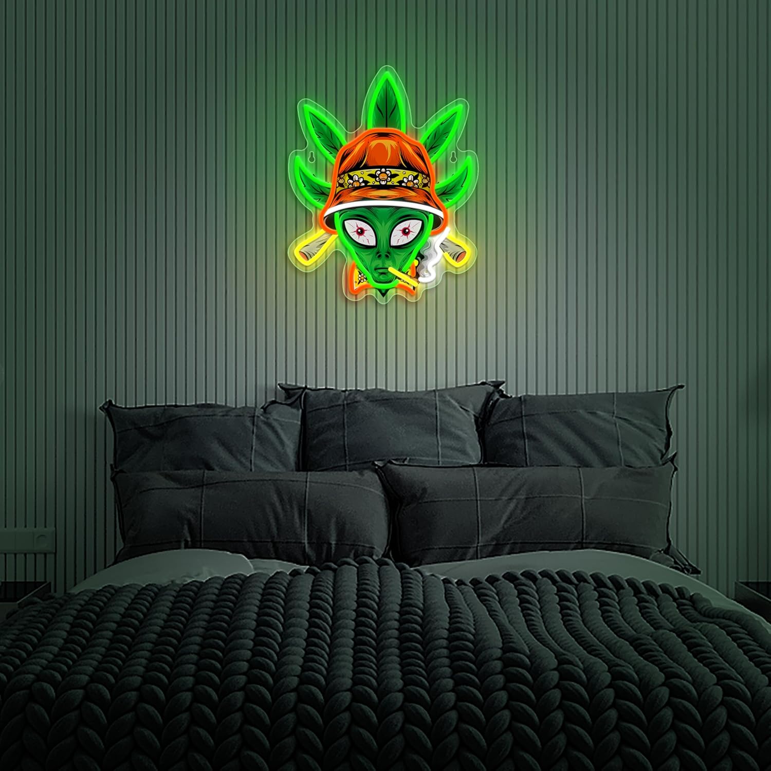 - Cool Alien Neon Light Sign: This is definitely an amazing alien neon sign. It uses a novel design. When you turn it on, it will instantly emit a magical green light to light up your decorative space. It is the perfect alien neon sign to decorate a monotonous space.