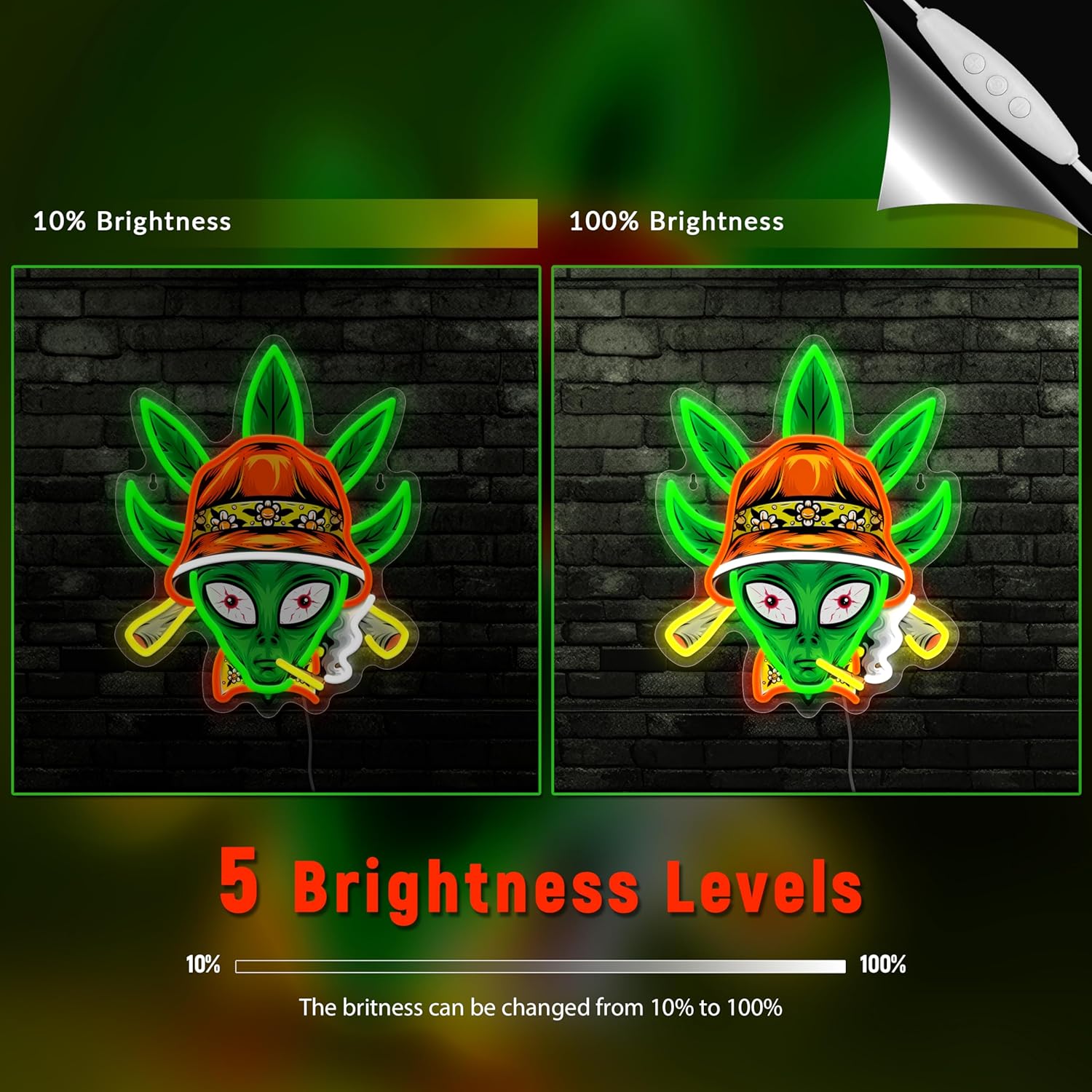 - Easy to Install and Use: The smoking alien neon light can be installed on any wall at will through the small hole reserved on the back panel, and has a wide range of decorative space. The smoking alien neon LED neon light sign uses an adjustable brightness switch, which can perfectly adapt to the surrounding environment without making you feel dazzling.