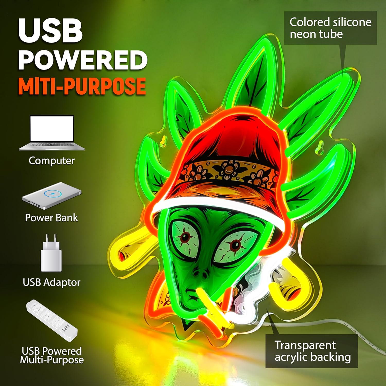 - Diverse Power Supply Methods: The smoking alien LED light-emitting neon light sign uses a USB interface power supply method, allowing you to have a variety of power supply methods. You can use a computer power bank mobile phone charger and other power supplies with USB interfaces to power it, which is very convenient.